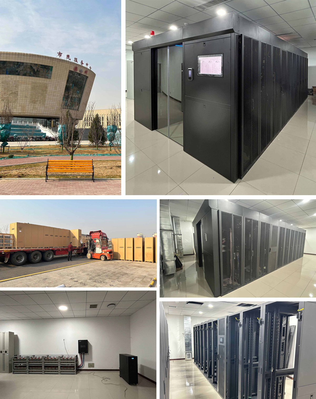 某市市民服務(wù)中心 機(jī)房雙排模塊冷通道微模塊中心設(shè)計、施工,內(nèi)搭載1臺列頭柜,2臺25kW列間空調(diào),19個服務(wù)器機(jī)柜,外設(shè)1臺60kW UPS電源+電池組組合,擁有快速部署、高效節(jié)能、遠(yuǎn)程管理等特點(diǎn),滿足客戶在云時代對數(shù)據(jù)中心管理的需求。