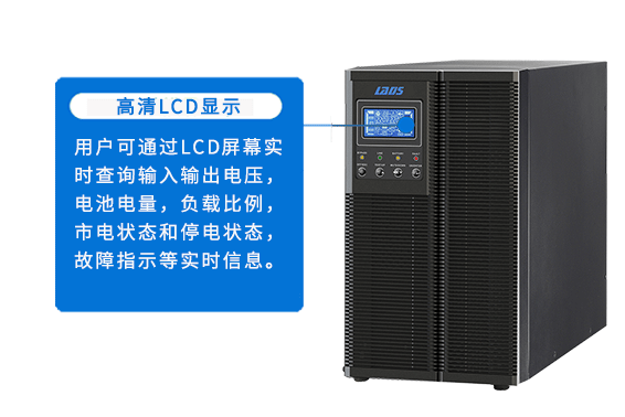 用戶可通過LCD屏幕實時查詢輸入輸出電壓,電池電量,負載比例,市電狀態(tài)和停電狀態(tài),故障指示等實時信息。