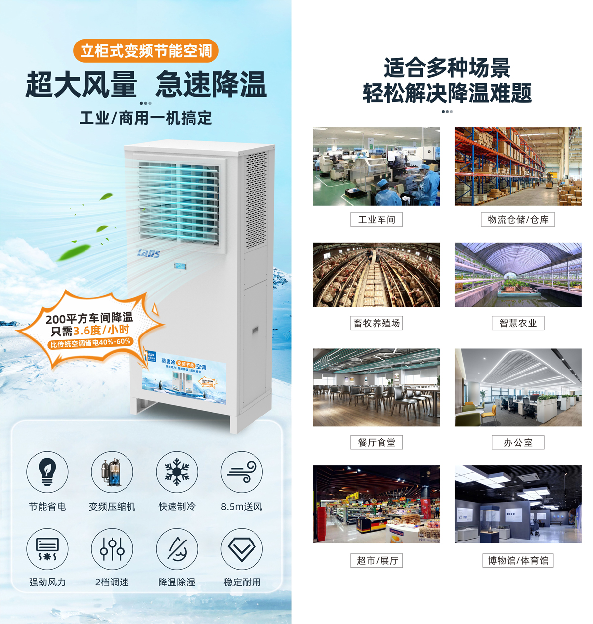 雷迪司立柜式蒸發(fā)冷變頻節(jié)能省電空調(diào)